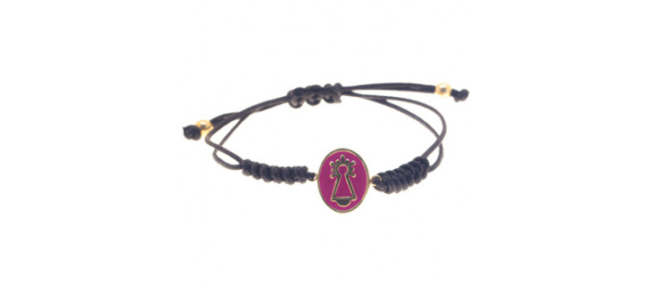 Pulsera de plata de primera ley (925) con baño de oro de 2 micras y esmalte rosa.